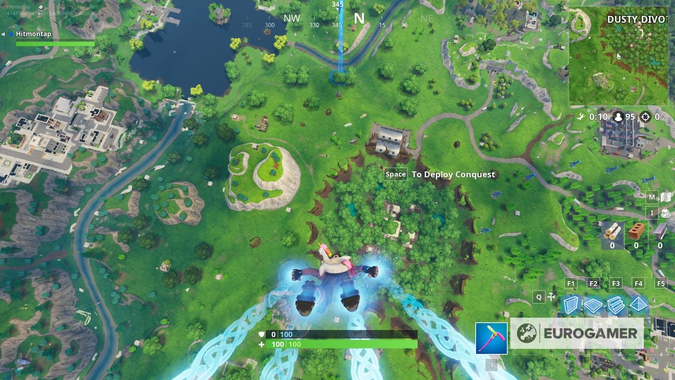 Dusty Divot ligt ongeveer in het midden van het eiland. Namelijk tussen Tilted Towers en Retail Row. Je hoeft echter niet naar Dusty Divot te gaan. Volg gewoon onze instructies hieronder op.