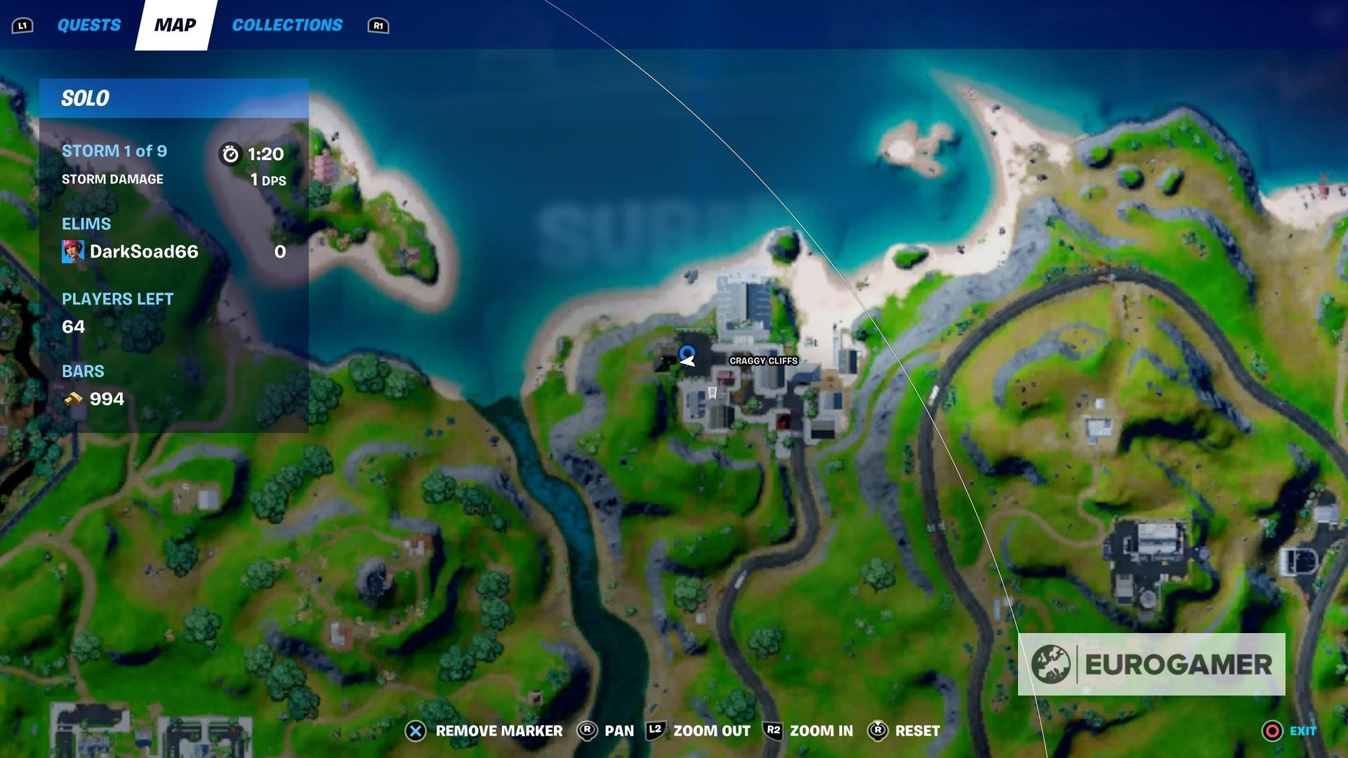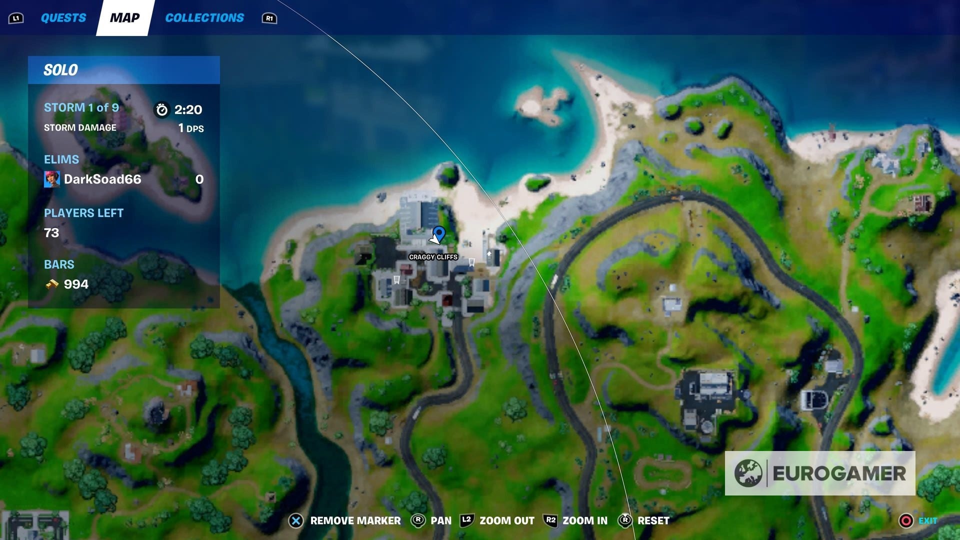Daarom gaan we naar Craggy Cliffs. Eerst wil je naar het grote huis in het noorden gaan (ofwel te voet of door er meteen te landen vanuit de Battle Bus).