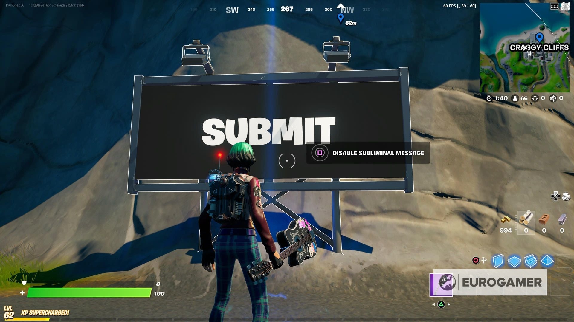 Je ziet nu een gigantisch billboard dat verandert naar de tekst 'Submit' wanneer je in de buurt komt. Nu moet je gewoon nog de boodschap 'disable subliminal message' volgen en de quest is voorbij.