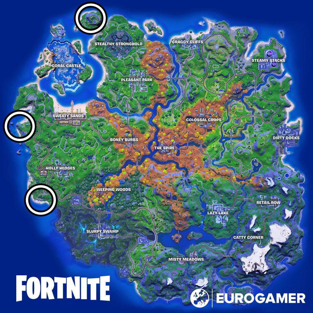 Fancy View, Rainbow Rentals en Lockie's Lighthouse zijn allemaal te vinden op de volgende locaties op de Fortnite map: