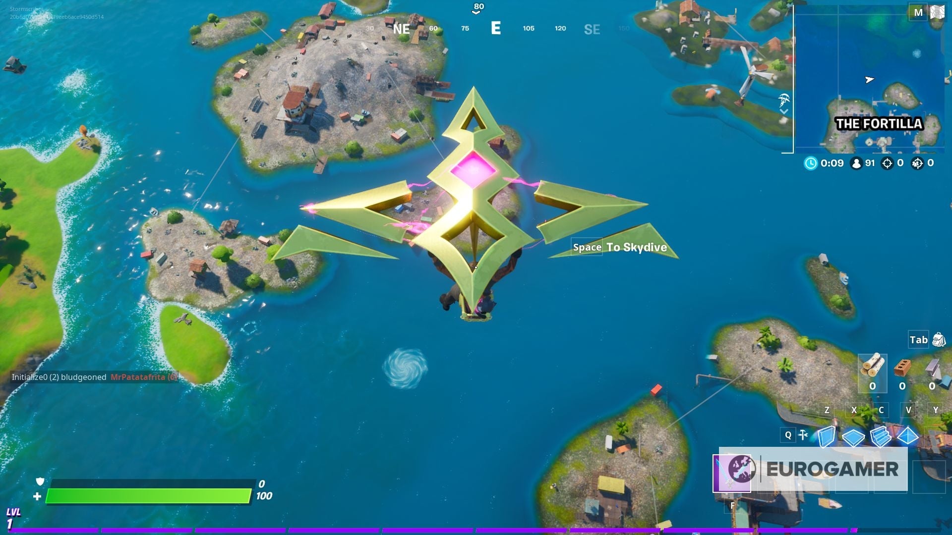 Whirlpools kan je gemakkelijk zien vanuit de lucht, dus de gemakkelijkste manier om deze challenge te voltooien is door vanuit de battle bus recht naar The Fortille te vliegen.