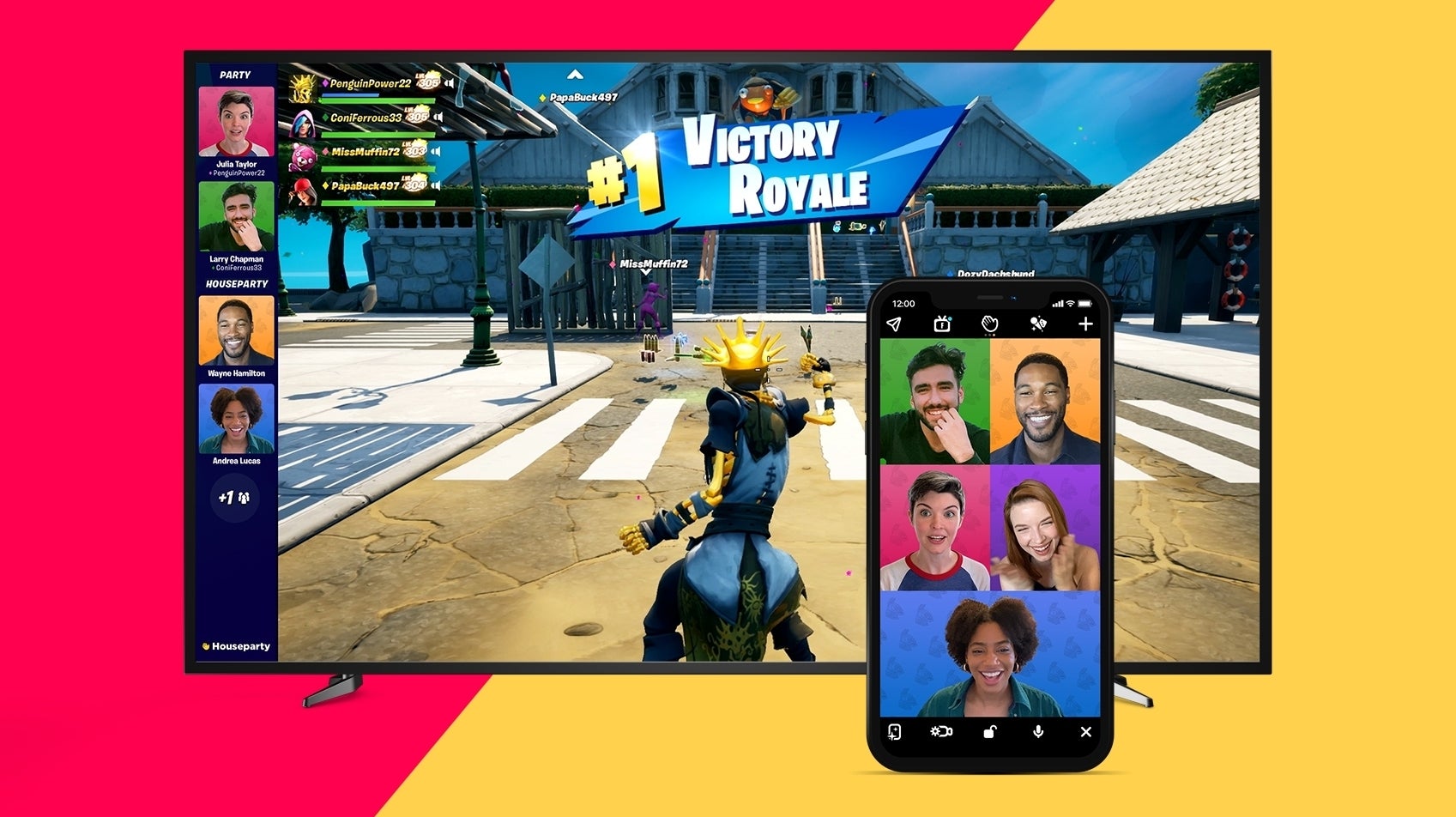 In de Houseparty app kun je je Fortnite account linken. Vervolgens kun je vrienden uitnodigen voor een videogesprek. Die beelden worden zowel in de app als in de game getoond. Je kunt de app bovendien ook gebruiken om met je vrienden te chatten, zelfs wanneer je op dat moment geen Fortnite speelt.