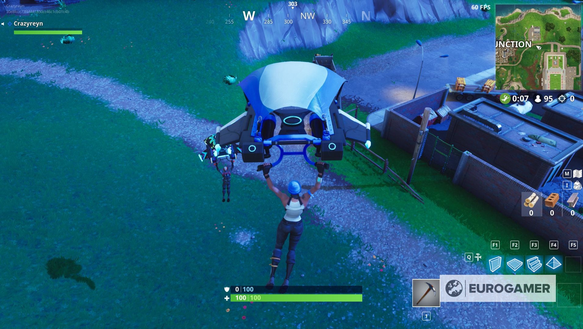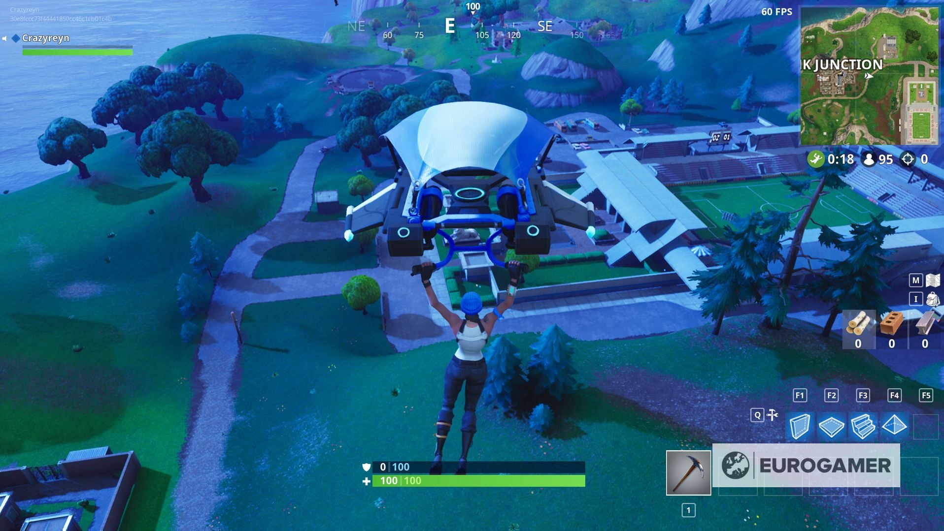 Terwijl je erheen stapt, zul je een aantal herkenningspunten tegenkomen om je de weg te wijzen. Je wil dat Junk Junction ten westen van je ligt, het voetbaldstadion in het zuid-oosten en een gebouw in het noorden.