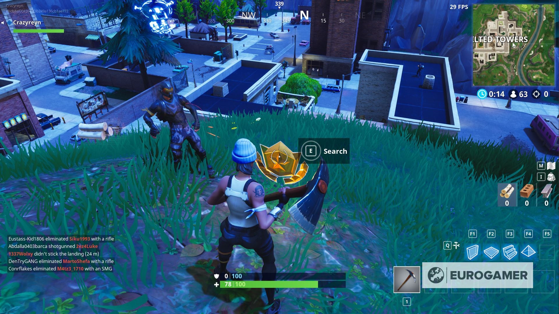 Uit onze ervaringen blijkt dat dit een vrij drukke plek is, omdat Tilted Towers al een van de populairste startlocaties is. Doe je best om zo snel mogelijk de schat te pakken.
