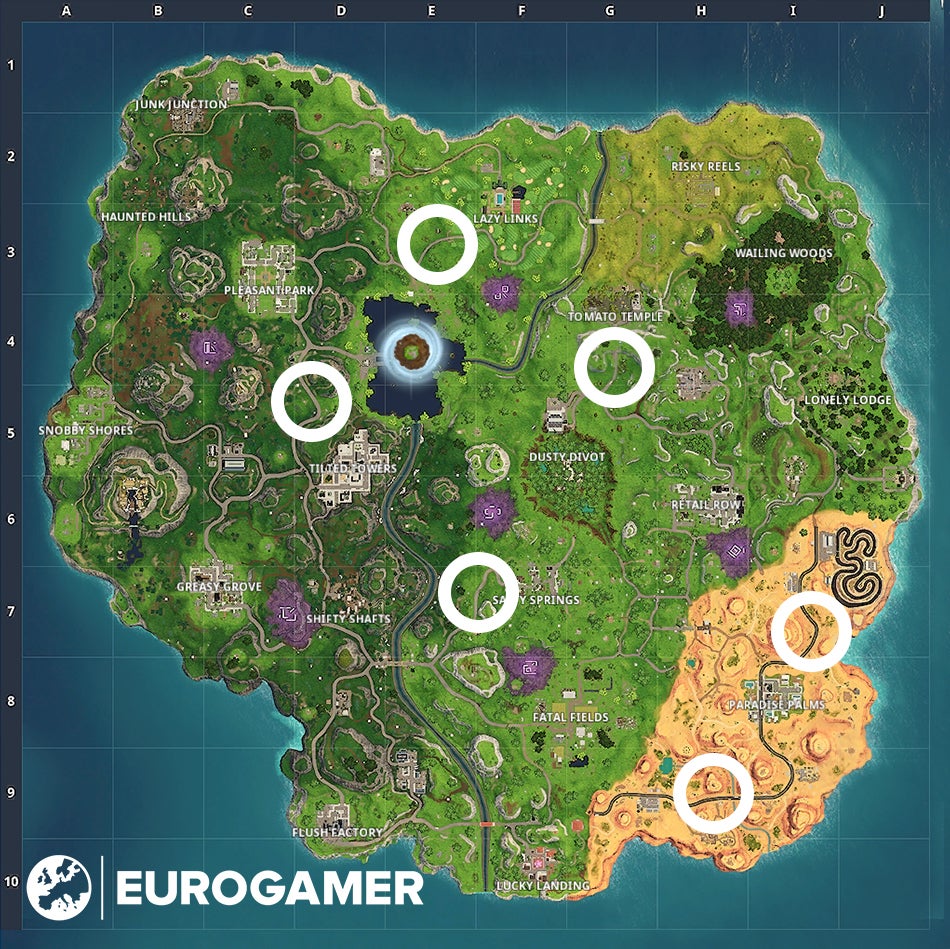 De Radar Sign locaties zijn niet makkelijk te vinden, maar daar hebben we boven in dit artikel een handige map voor. Je moet dus enkel nog een ATK vinden. Deze vind je op willekeurige plaatsen, maar meestal vind je er dichter bij specifieke plaatsen zoals Lazy Links, de woestijn race track en Paradise Palms. Vooral het grote gebouw ten oosten van de race track herbergt meestal enkele Golf Carts.