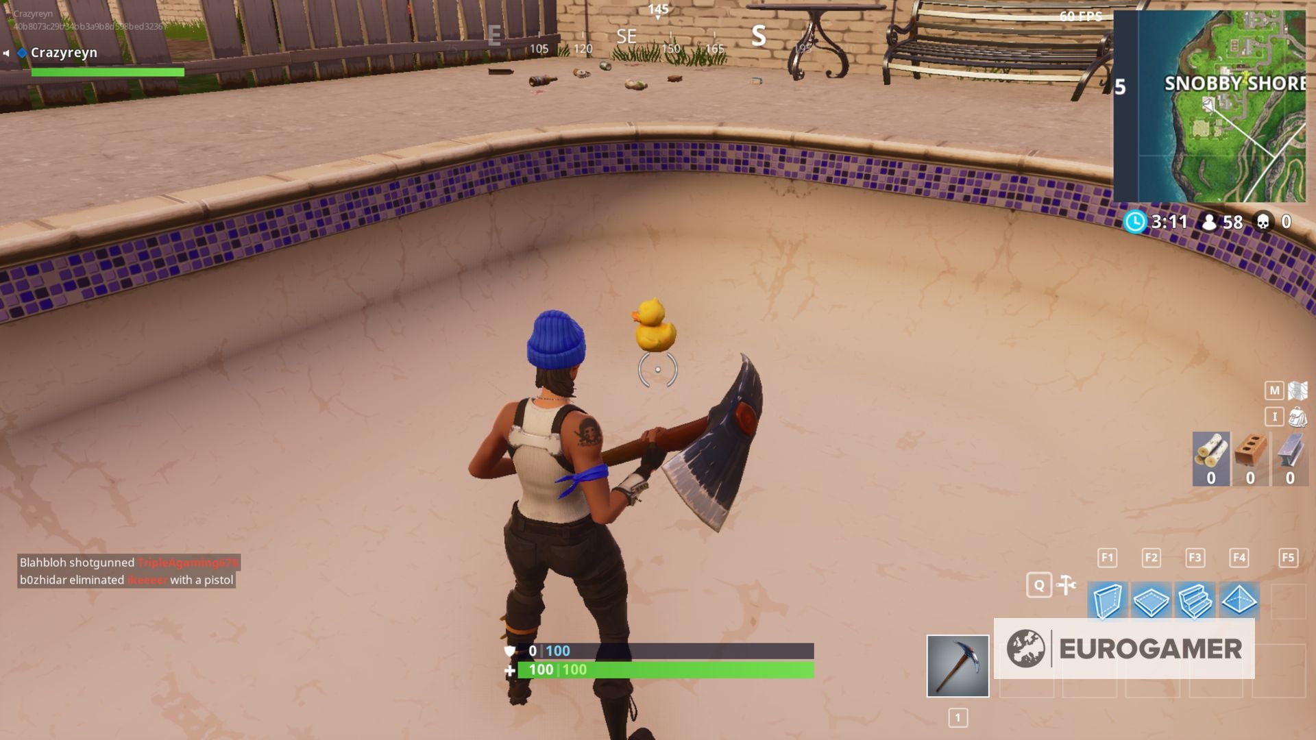 7) Ga naar Snobby Shores en ga naar het tweede meest laaggelegen huis. In de tuin vind je een zwembad, met daarin een Rubber Ducky: