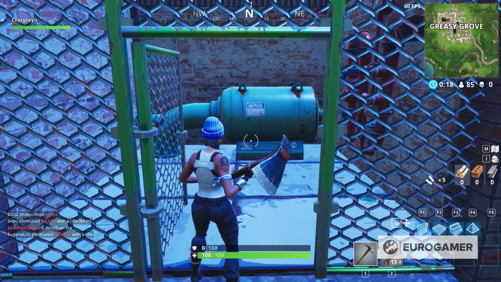 14) In het zuidwesten van Greasy Grove, net voor de weg, vind je een afgebakend gebied. Ga hier binnen, vernietig de waterpijp met je bijl en raap de Rubber Ducky op:
