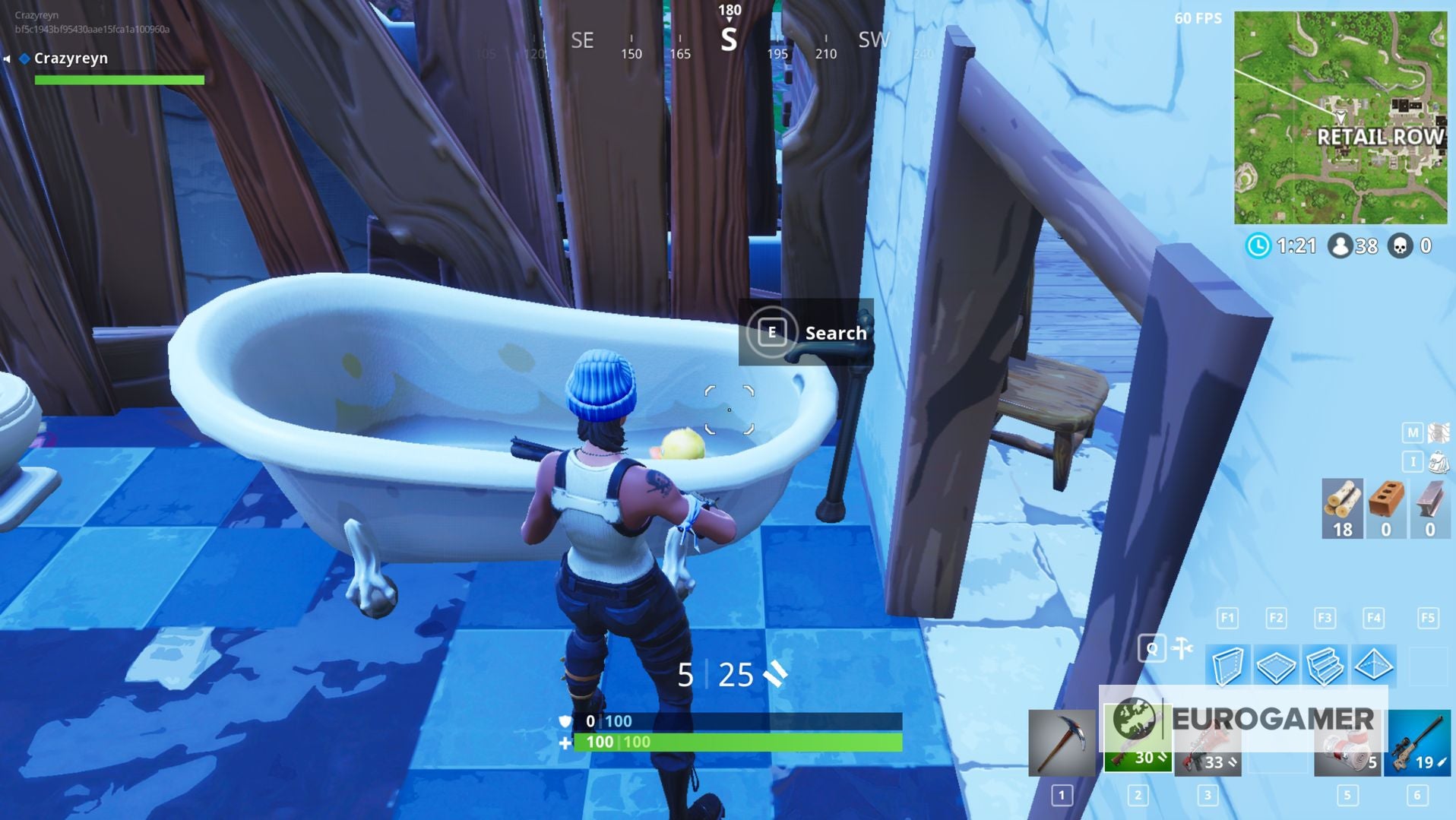 4) In het noordwesten van Retail Row vind je een vervallen huis. Ga naar de badkamer op het gelijkvloers (door de voordeur en naar rechts) en grijp de Rubber Ducky uit de badkuip: