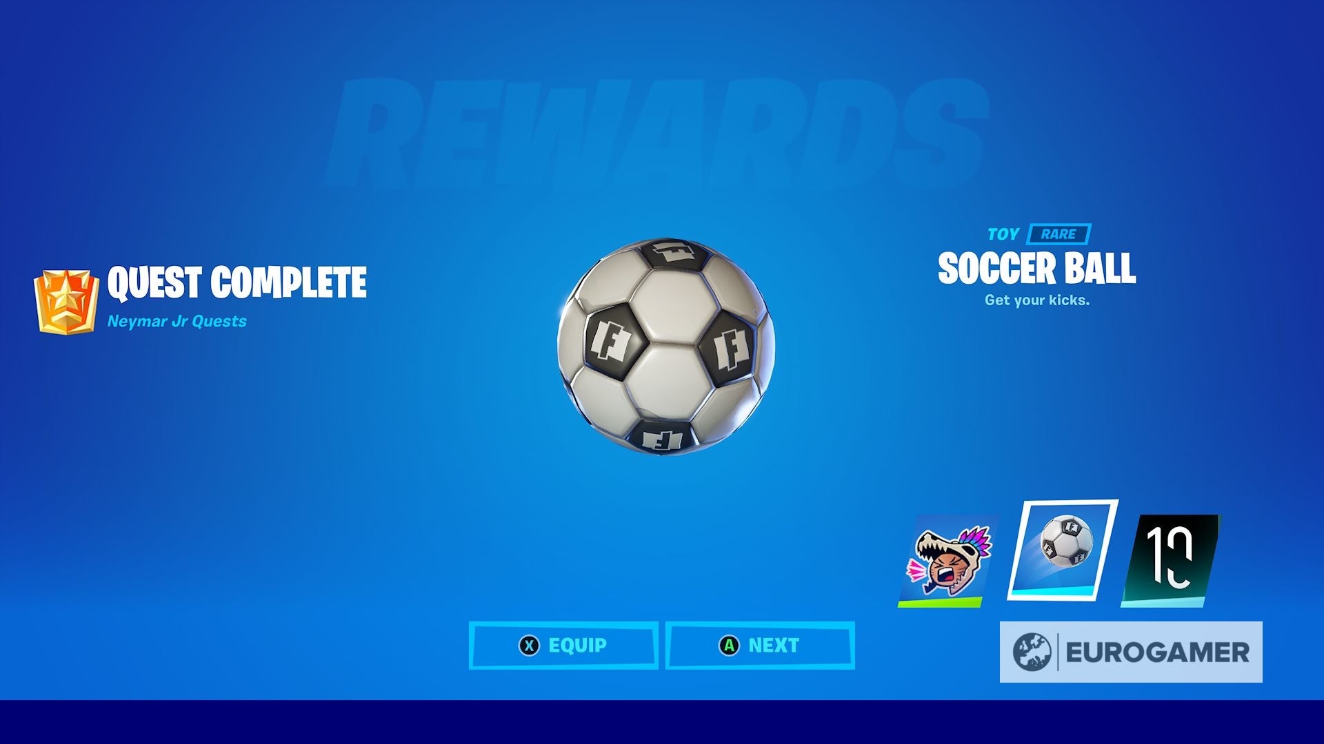 Denk er aan dat je de Neymar Jr skin moet dragen om de quest te volooien. De skin krijg je door 5 Soccer characters quests tot een goed einde te brengen.