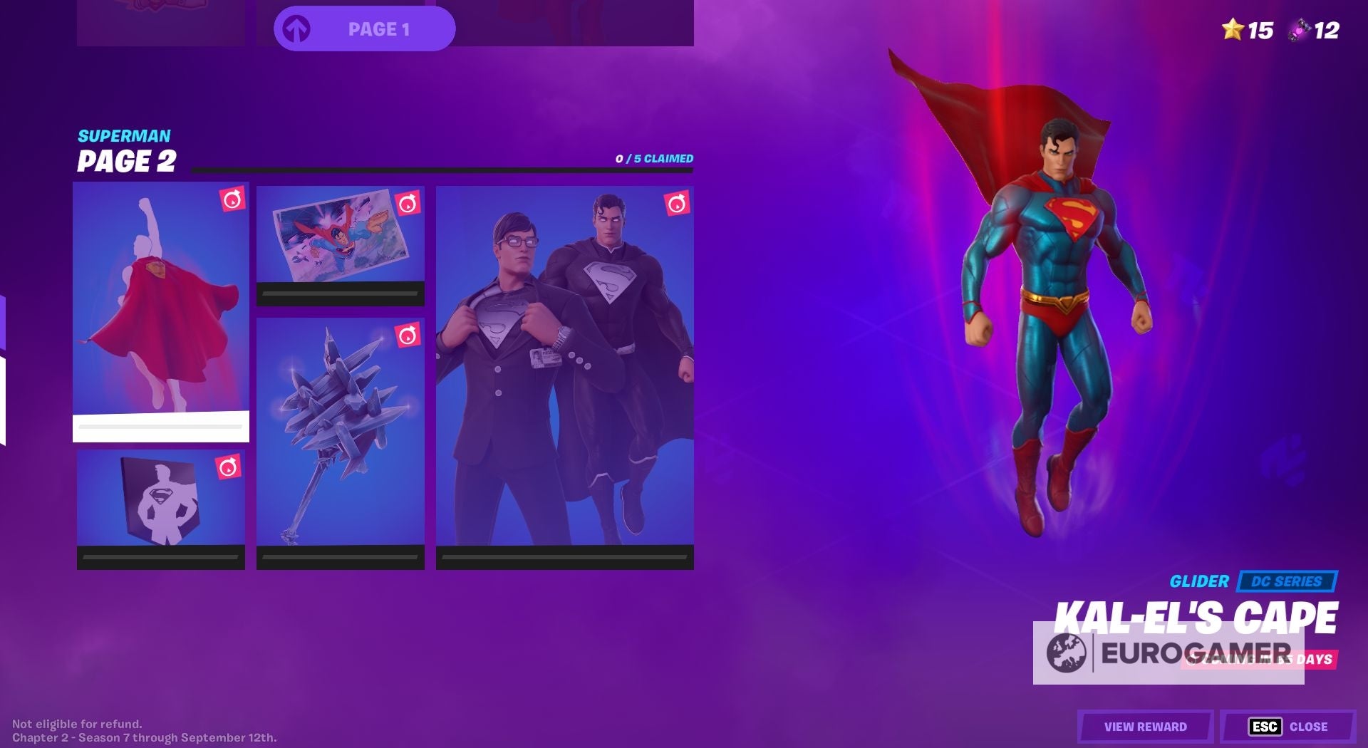 Er is ook nog een mogelijkheid dat het nieuwe Battle Pass systeem voor Season 7 toegepast wordt op de Superman-thema cosmetica, vooral omdat ze verdeeld zijn over twee pagina's. Dat betekent dat we Battle Stars, of een Superman-valuta zoals Kryptonite, moeten gebruiken om de cosmetische voorwerpen naar voorkeur vrij te spelen, waarbij sommige een hoger vereiste-niveau hebben dan andere.