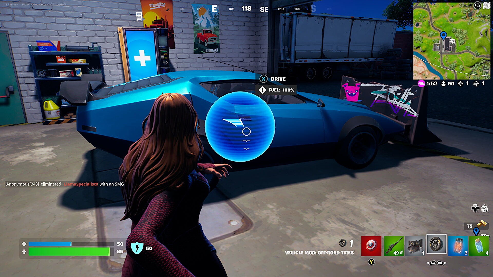 Hoe een Whiplash modden met off-road tires en Cow Catcher in Fortnite
