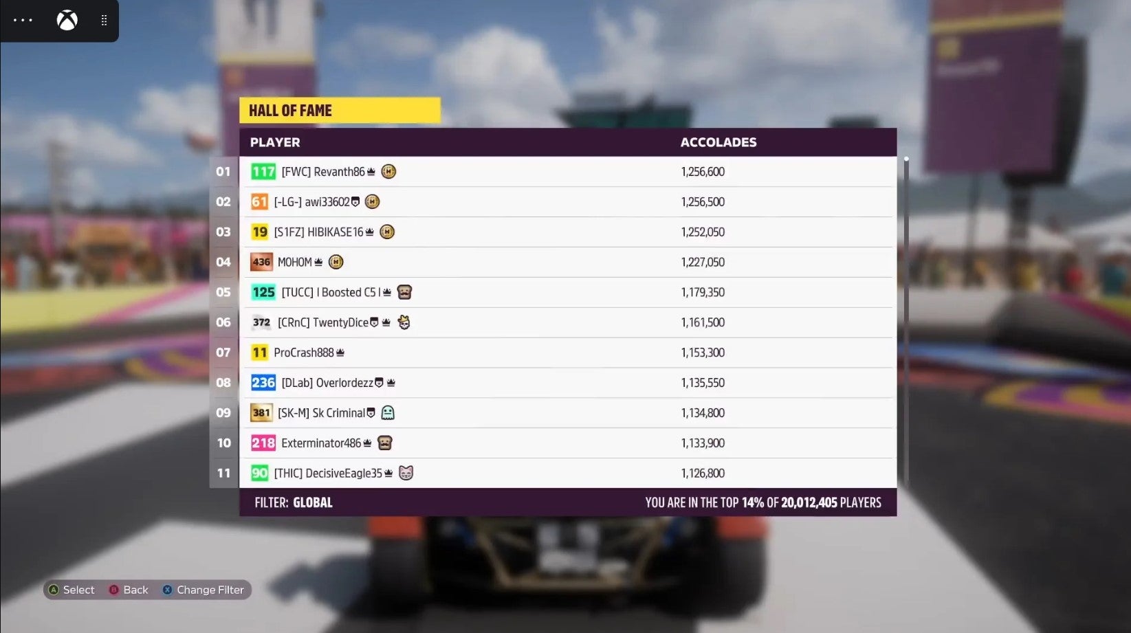 De ranglijst van de Forza Horizon 5 Hall of Fame vergelijkt de totale scores van alle spelers met elkaar. Onderaan die lijst zag VGC dat de titel nu wordt gespeeld door 20.012.405 spelers.