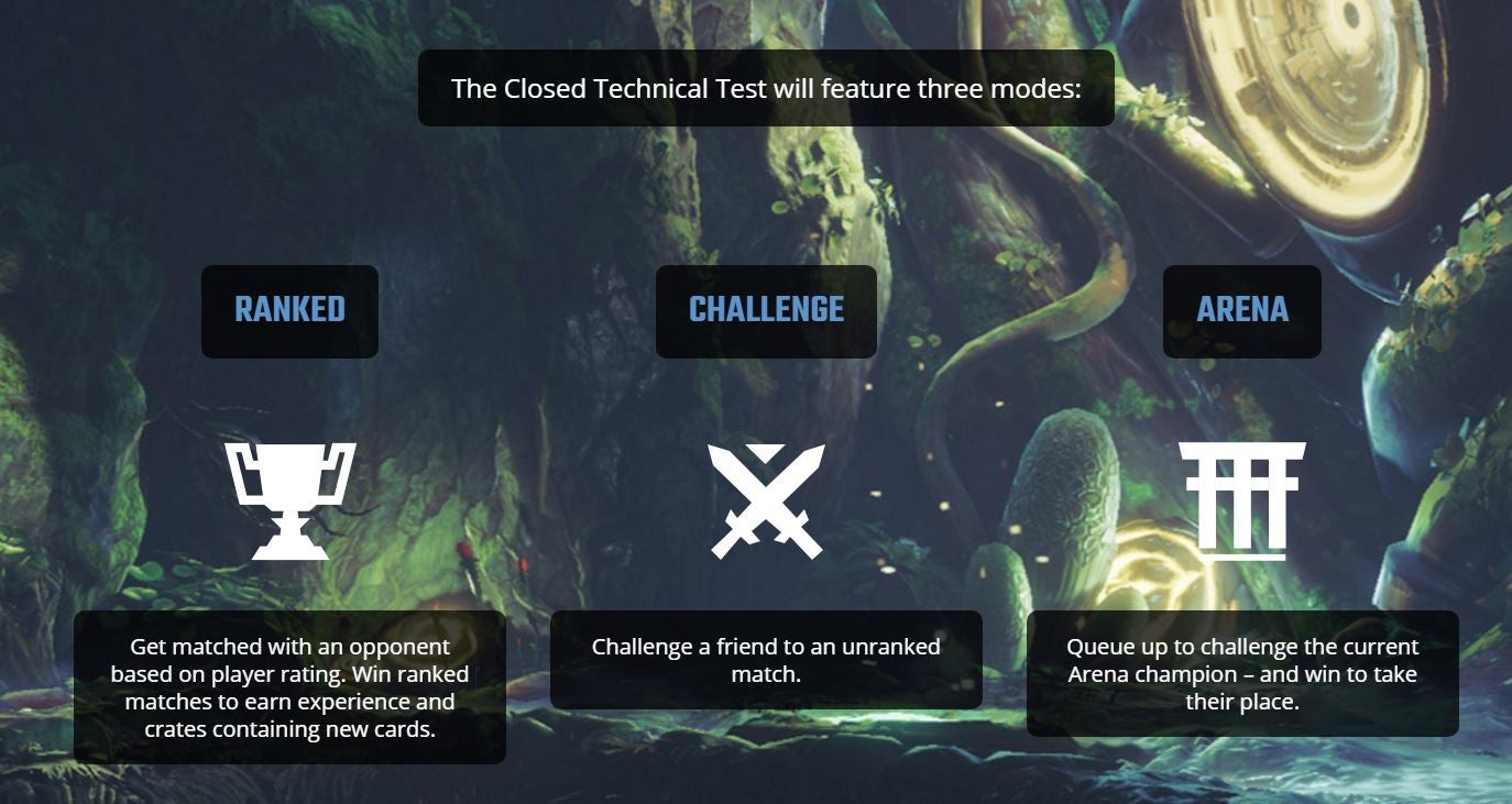 Volgens de officiële website combineert de game de actie van een first-person shooter met de tactieken en metagame laag van een collectible card game. Op diezelfde website kun je je inschrijven voor een gesloten technische alfa op de pc, waarin je drie verschillende modi kunt testen.