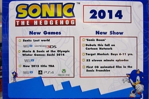 Er is mogelijk een nieuwe Sonic-game in ontwikkeling voor de PlayStation 4, Xbox One en Wii U. De titel is gespot op een reclameposter voor de Sonic-reeks, gevonden tijdens een speelgoedbeurs in Neurenberg, Duitsland (via Spindash).