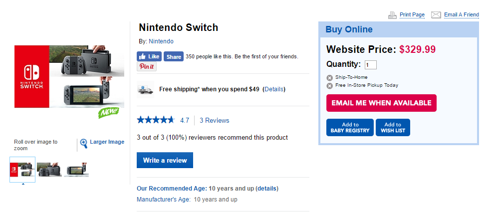 De Nintendo Switch prijs is mogelijk op de Canadese website van ToysRUs gelekt. Nintendos nieuwste console wordt er voor 329.99 Canadese dollars aangeboden.