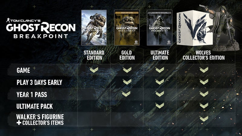 Zoals het Ubisoft beaamt zijn er verschillende Ghost Recon: Breakpoint versies verkrijgbaar. Hieronder zetten we ze op een rij: