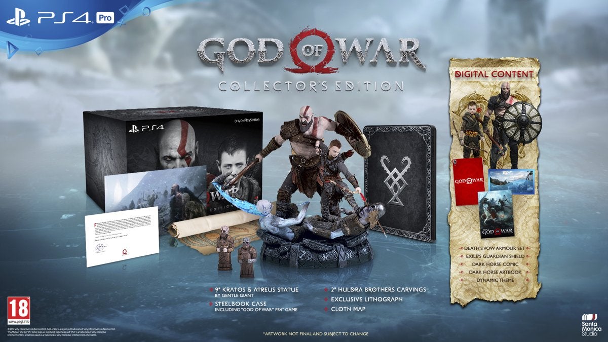 Wil je zeker weten dat je God of War op de dag van de release speelt? Hieronder vind je een overzicht van de verschillende edities van de game die je kunt bestellen. Bij een pre-order krijg je sowieso drie exclusieve in-game schilden. Daarnaast is er ook een speciale God of War PlayStation 4 Pro-bundel.
