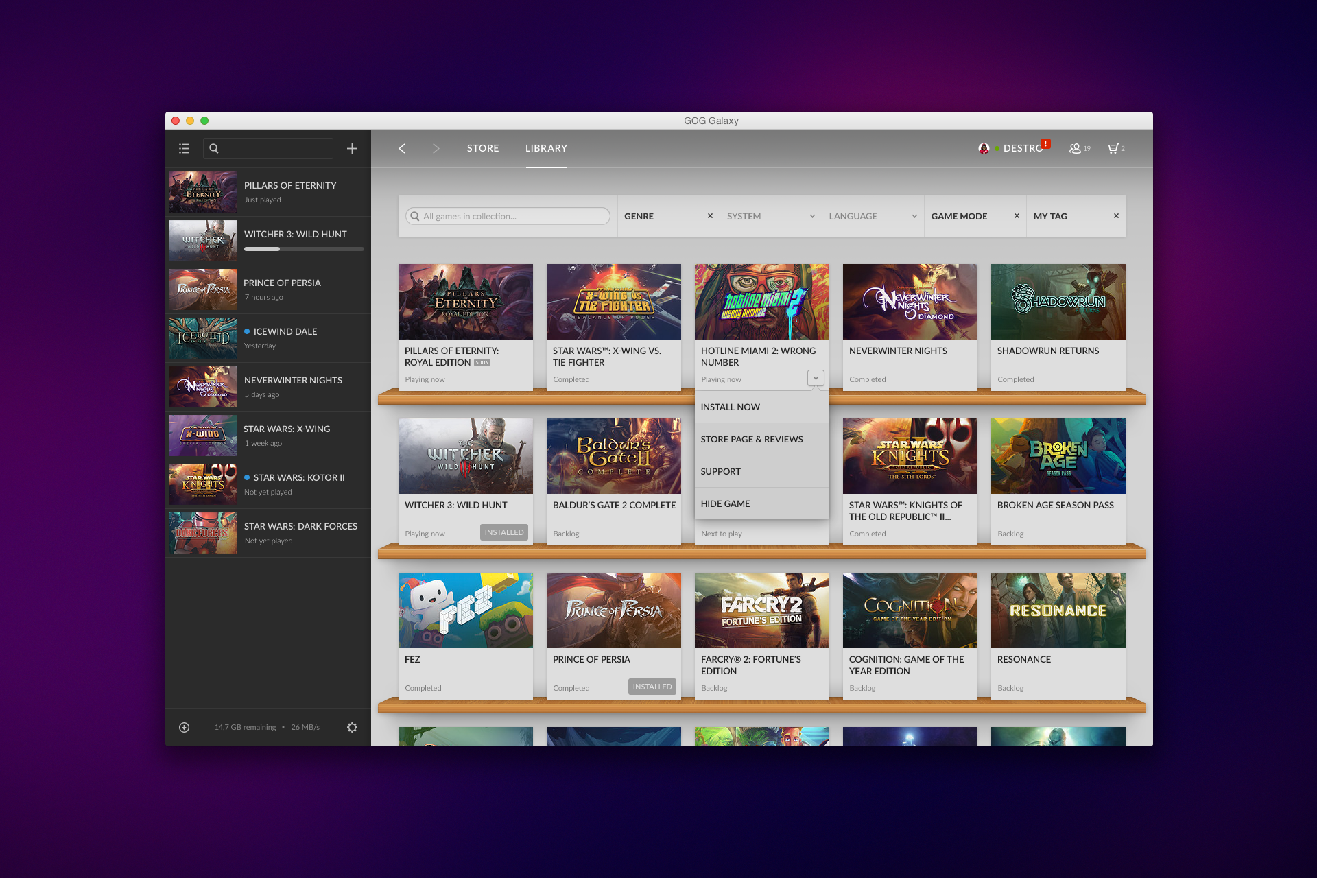 De bètaversie van GOG Galaxy lanceerde in 2015 als het softwareplatform van website GOG.com. In tegenstelling tot platformen zoals Steam en Origin is GOG Galaxy volledig optioneel; je hebt het platform niet nodig om GOG-games te spelen.