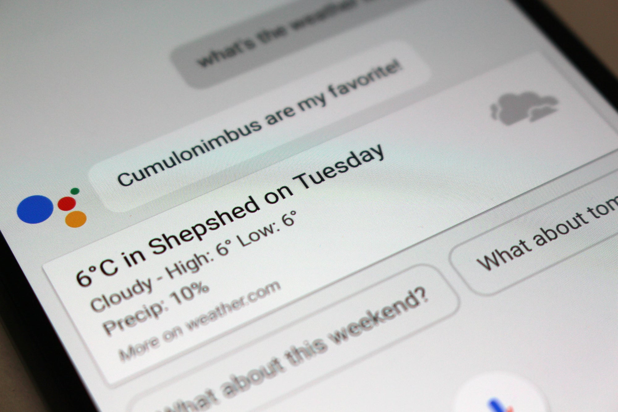 Swipe je van links naar rechts, dan vind je nu het Google landing scherm (voorheen Google Now). De Personal Assistant van Google heeft deze keer een flinke boost gekregen. Je kunt haast menselijke gesprekken voeren, en de antwoorden refereren soms zelf naar vorige vragen. Vraag je eerst naar het weer en vervolgens "Hoe zit het dit weekend?", dan volgt er automatisch een antwoord. Hoe meer je de Assistant gebruikt, hoe meer het ook over je leert en hoe gerichter het leert zoeken. Over de ethische kant van dit soort datavergaring kun je je natuurlijk vragen stellen.