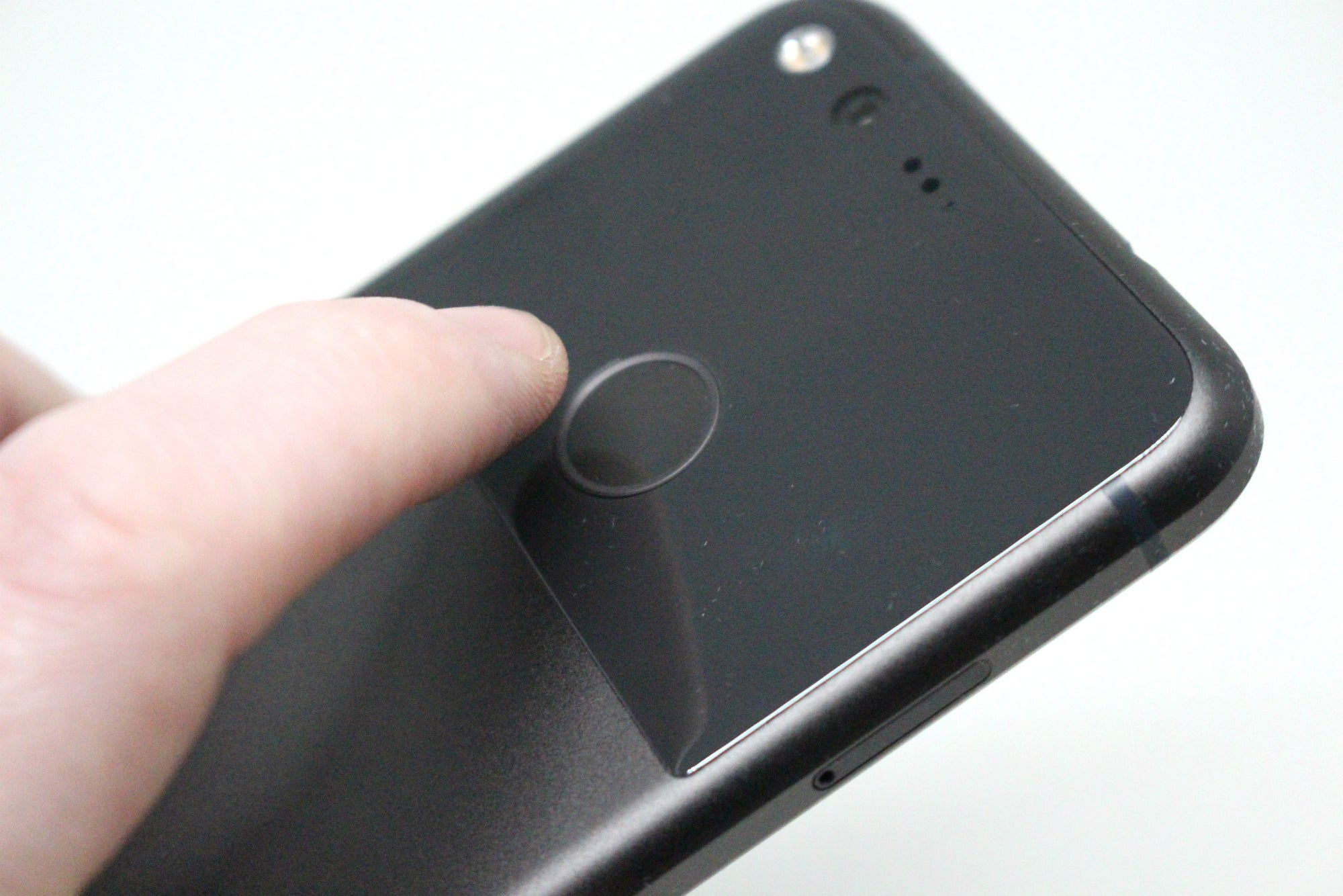 Zoals de Nexus 5X en 6P is de vingerafdrukscanner aan de achterkant gemonteerd. Het is uiteindelijk je eigen voorkeur of je dat makkelijker vindt dan een scanner aan de voorkant of niet. Als de smartphone neerligt, kun je hem op deze wijze in elk geval niet unlocken. De scanner is in elk geval zeer snel en accuraat - meer dan die van de iPhone 7. Zelfs door een lichte aanraking reageert de scanner al.