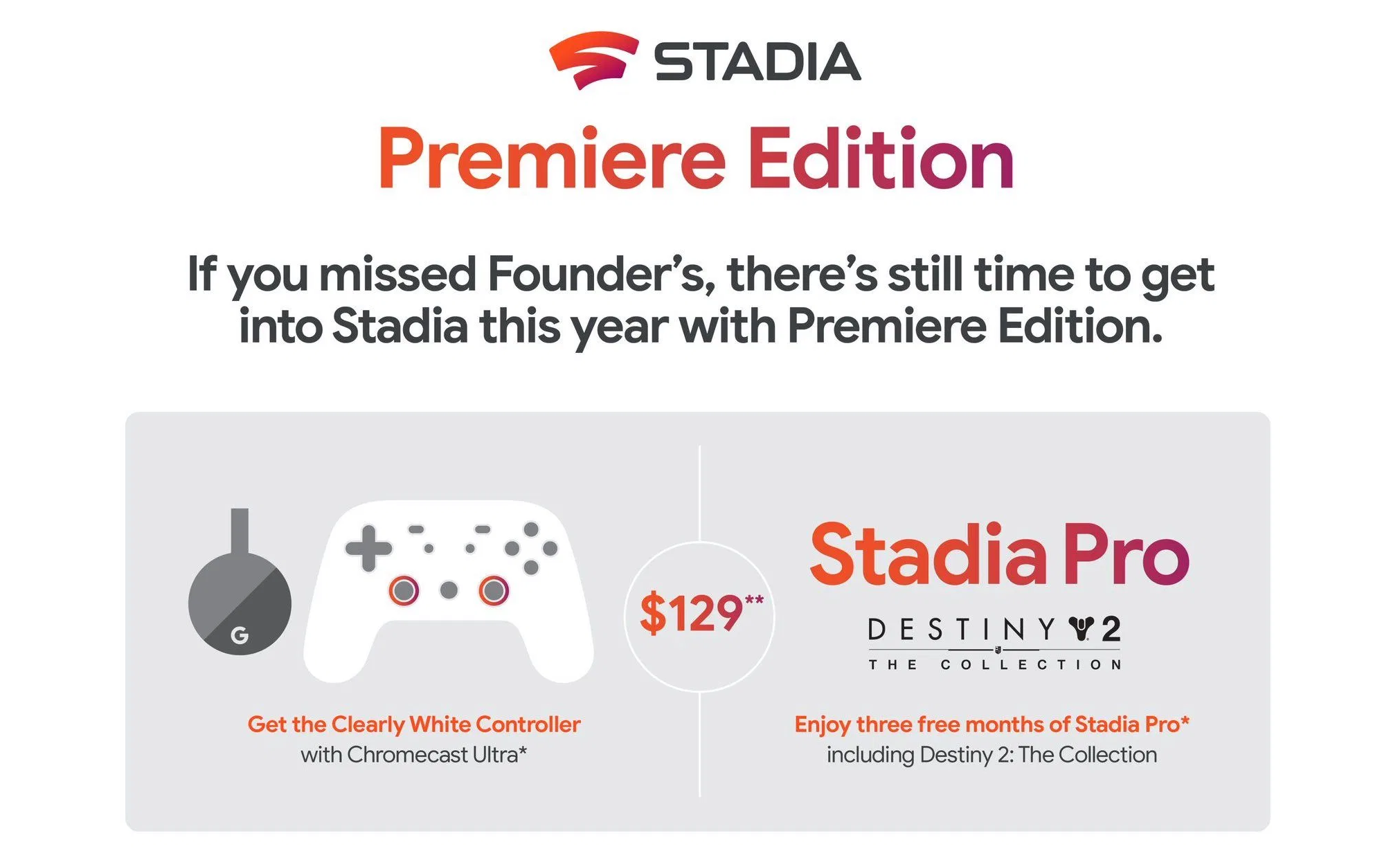 Wil je als early adapter met Google Stadia aan de slag? Dan moet je de Founder's Edition of Premiere Edition in bezit hebben. Beide edities bevatten een Chromecast Ultra, Stadia controller en drie maanden Stadia Pro-abonnement. Bij een Founder's Edition krijg je bovendien een nachtblauwe in plaats van witte controller en voor vrienden een extra proefabonnement. De Founder's Edition is echter uitverkocht. In de prijs zit verder geen verschil: beide edities kosten namelijk 129 euro (met gratis verzendkosten).