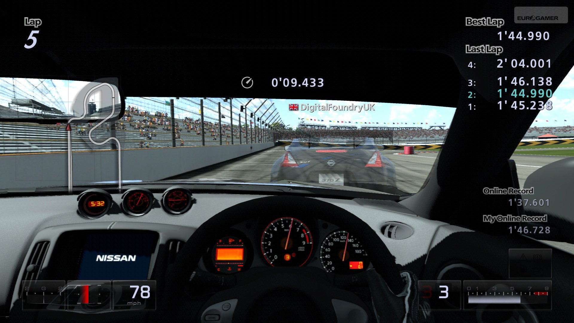 Het doet me ergens wat pijn aan het gamehart dat ik, na zo een fiere uiteenzetting over de geslaagde gameplay, nu mijn rode balpen moet bovenhalen. Niet alles dat Polyphony Digital beloofde, is goed afgewerkt. Op de meer dan 150 verschillende muziektracks kan ik niks zeggen, want menu's en events hebben elk meerdere songs. Wat echter vooral opvalt, zijn de grafische details. Gran Turismo 5 is een prachtige game op veel vlakken, maar andere keren moest ik even pauzeren en laten bezinken wat ik zag op het scherm. Niet alle wagens bezitten een cockpit view die de ervaring des te leuker maakt, en het detail is pas scherp in de prachtigste en snelste bolides. Het schademodel dat beloofd werd, toont zichzelf pas in beperkte mate als je al enkele keren ergens sterk tegenaan knalt, en dan nog zijn het vaak deukjes. Maar wat me helemaal van mijn melk bracht, was de regen die ik bestudeerde van uit mijn chauffeurszetel. De druppels die al tikkend op de voorruit neervielen, zagen er uit als grijze pixels. Ik zou haast denken dat ik een bril moet beginnen dragen, maar niets is minder waar: de regen is afgrijselijk in een anders uiterst gedetailleerde game. Blijkbaar hadden ze maar beter nog een jaartje gesleuteld aan het spel, want in die zes jaar heeft men onvoorstelbaar genoeg toch het een en ander over het hoofd gezien.