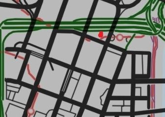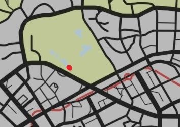 Ga eerst naar de aangegeven 1 bij het kanaal. In het noordwesten zie je een metro-ingang. Ga rechtsom en volg de linkertunnel. Na een tijdje neem je rechts de trap naar boven. Klim links over de rode stenen om uit te komen bij het UFO-onderdeel.
