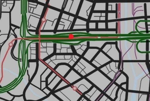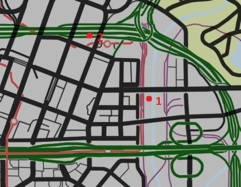 Ga onder de snelweg door om uit te komen bij een daklozenkamp. In de buurt van een stel banken vind je hier het onderdeel.