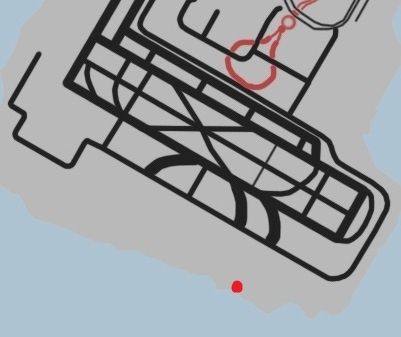 Aan het einde van het vliegveld rij je in het zuiden om een paar gebouwen heen. Hier is het onderdeel, maar pas wel op: je mag hier eigenlijk niet zijn. Neem dus een snelle auto mee, of een helikopter.