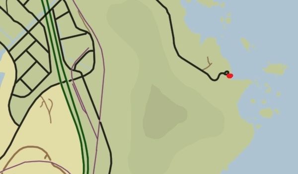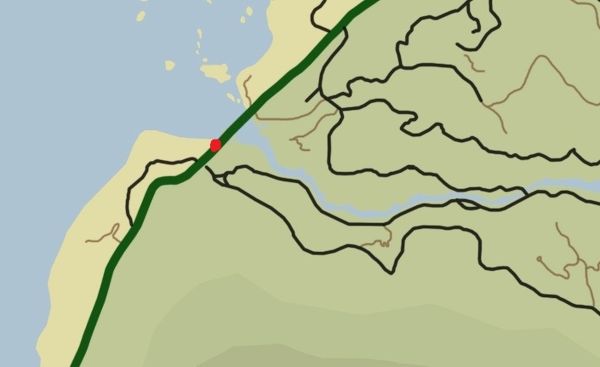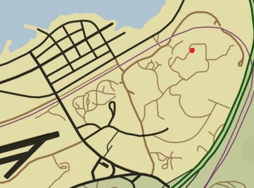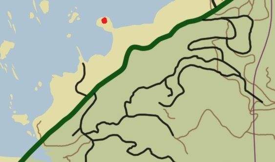 Op het schiereiland is een heuvel. Bij de top van de heuvel ligt het onderdeel.