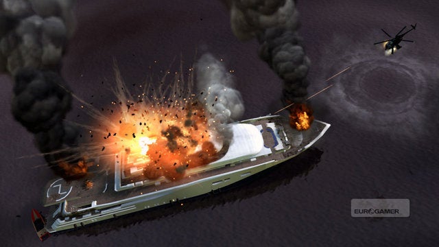 De initiële opdracht hier was nochtans eenvoudig: ga per speedboot naar een nabijgelegen jacht, steel de militaire helikopter die op die jacht staat en breng het ding terug naar Yusef. Eenmaal je de helikopter in handen hebt, krijgt Yusef echter nieuwe ideeën en vraagt hij je om de middelen van de helikopter te gebruiken om de boot op te blazen. Een aantal raketten en een drijvend smeulend hoopje as later achtervolg je drie speedboten met ontsnappende overlevenden. Je waant je in een typische Vietnam-film terwijl je laag over het water scheert en de boten bestookt met raketten en machinevuur. Om het even op z’n jaren ’90 te zeggen: het is gewoon de max. Het enige wat ontbrak was Ride of the Valkyries dat uit de luidsprekers blaasde.