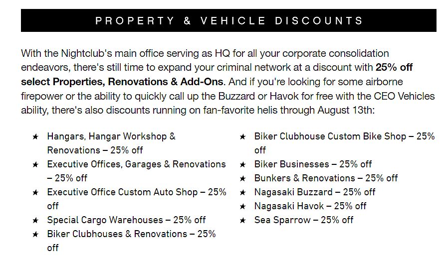 Alle GTA Online spelers kunnen daar bovenop ook nog eens van onderstaande kortingen genieten:
