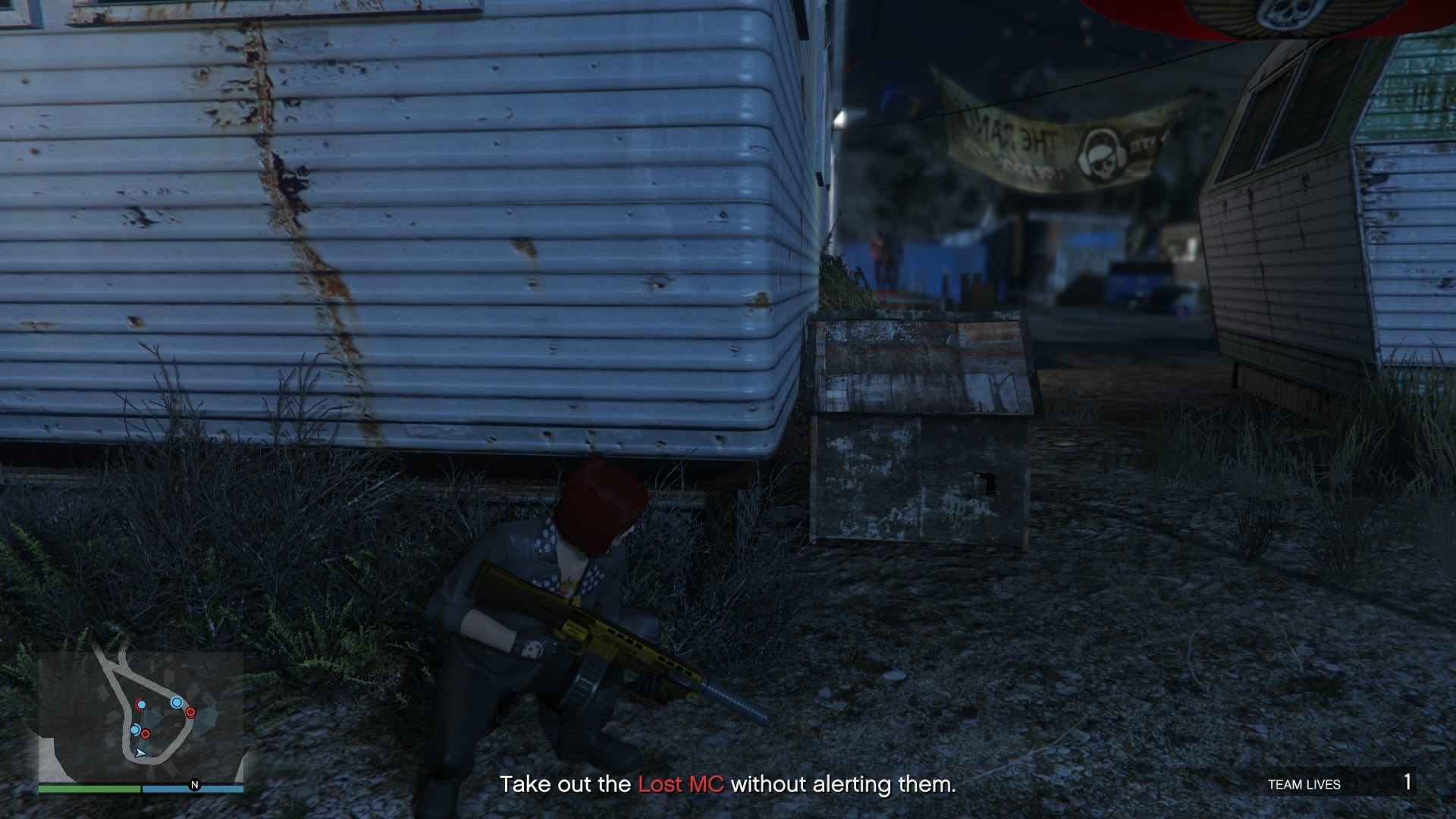 Ga allereerst naar Trevors trailer. Daar liggen wapens met een geluidsdemper voor je klaar.