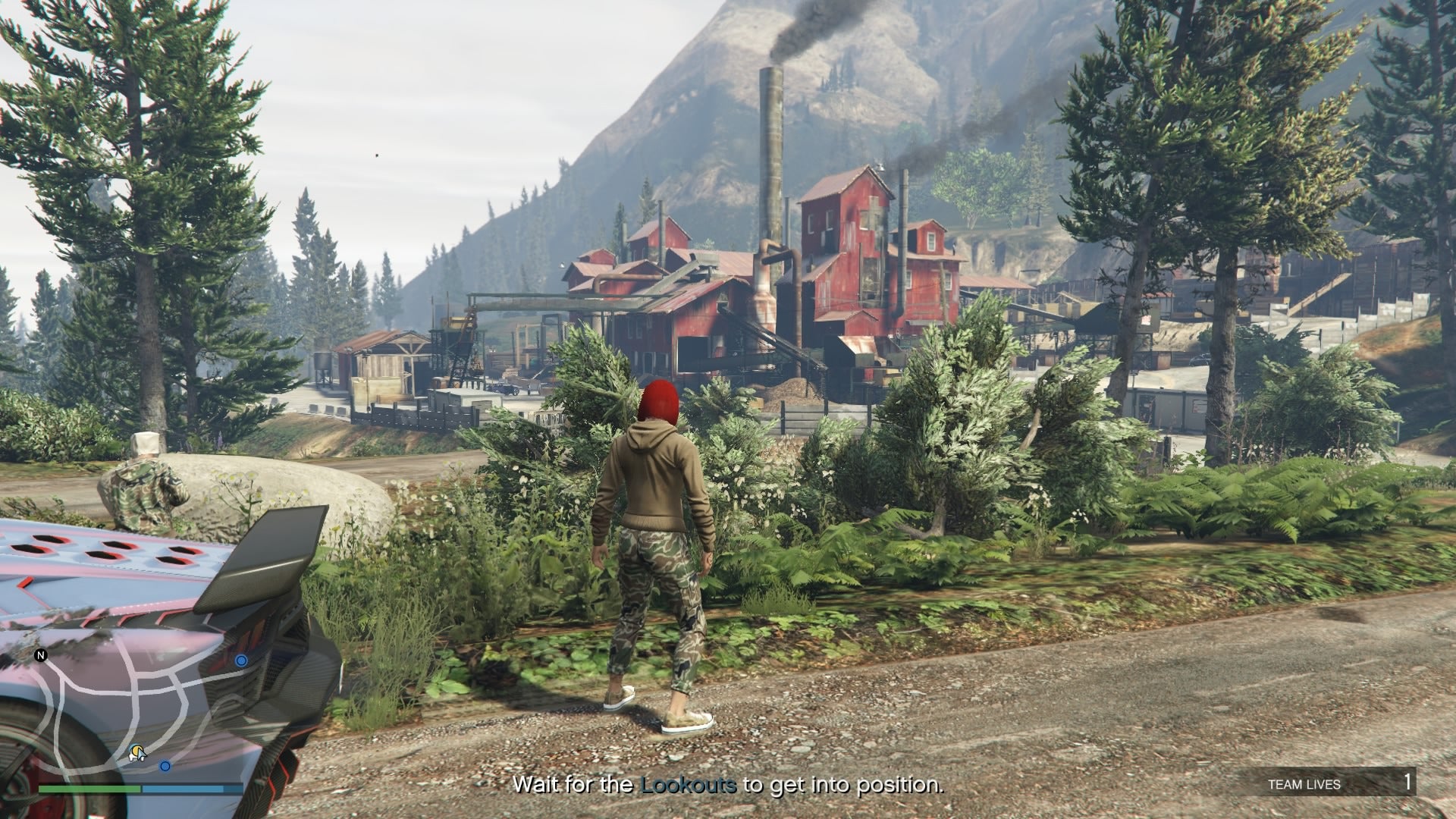 Het doel is naar de houtzagerij te gaan en twee Benson-vrachtwagens vol wiet van de Ballas te stelen. Er zijn drie rollen voor de job: Ground Team, Lookout West en Lookout East.