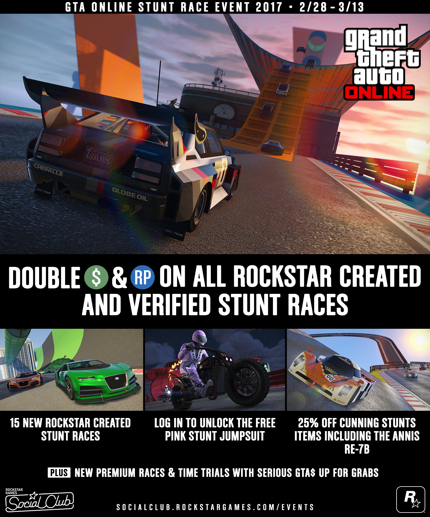 Het GTA Online Stunt Race Event 2017 is van start gegaan, aldus een blogpost van Rockstar.