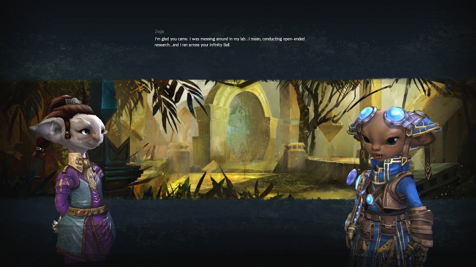 Oude wijn in nieuwe zakken zou je denken, maar wat deze quests boeiender maakt is dat je zelf bepaalt hoe ze op te lossen. Gedaan met quests waarvoor je enkel monsters over de kling moet jagen, want per quest zijn er steevast drie of vier alternatieve manieren om het questbalkje te vullen, nooit dezelfde overigens. Rekensommen oplossen om teleportatieportalen in te stellen, als getransformeerd varken truffels opsporen, planten verzamelen of onontplofte munitie na een veldslag onschadelijk maken, het zijn maar enkele van de alternatieven waardoor questen in Guild Wars 2 heel wat gevarieerder en minder grindy aanvoelt dat in andere MMO's.