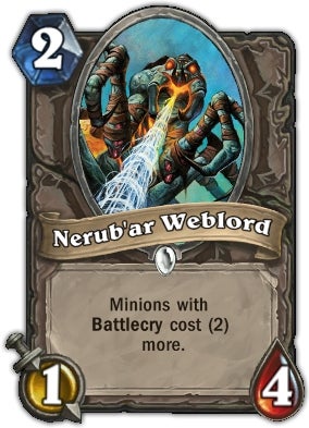 Stuur Grand Widow Faerlina zonder eten naar bed en je krijgt Nerub'ar Weblord. Het ziet er misschien niet zo krachtig uit maar zijn kracht om minions met Battlecry goedkoop uit te schakelen is erg handig tegen agressieve decks.