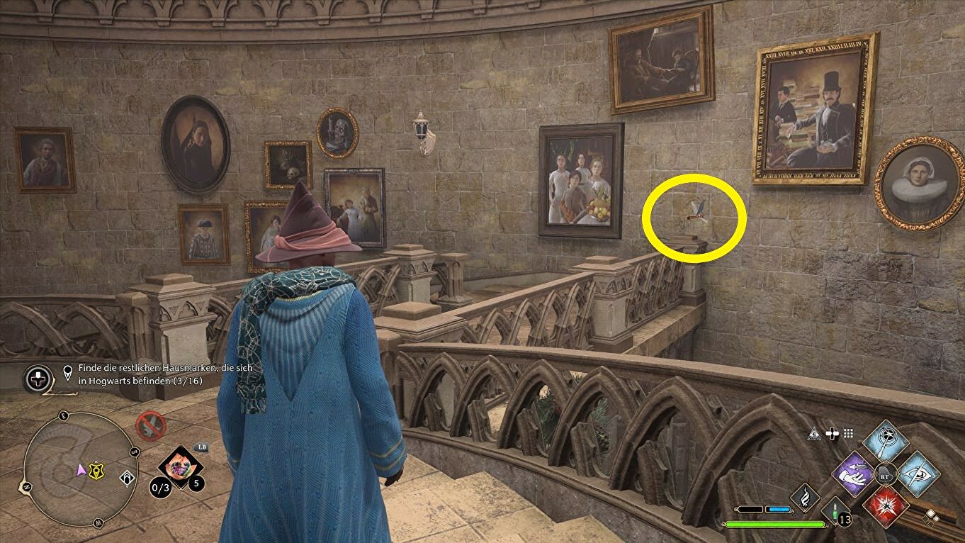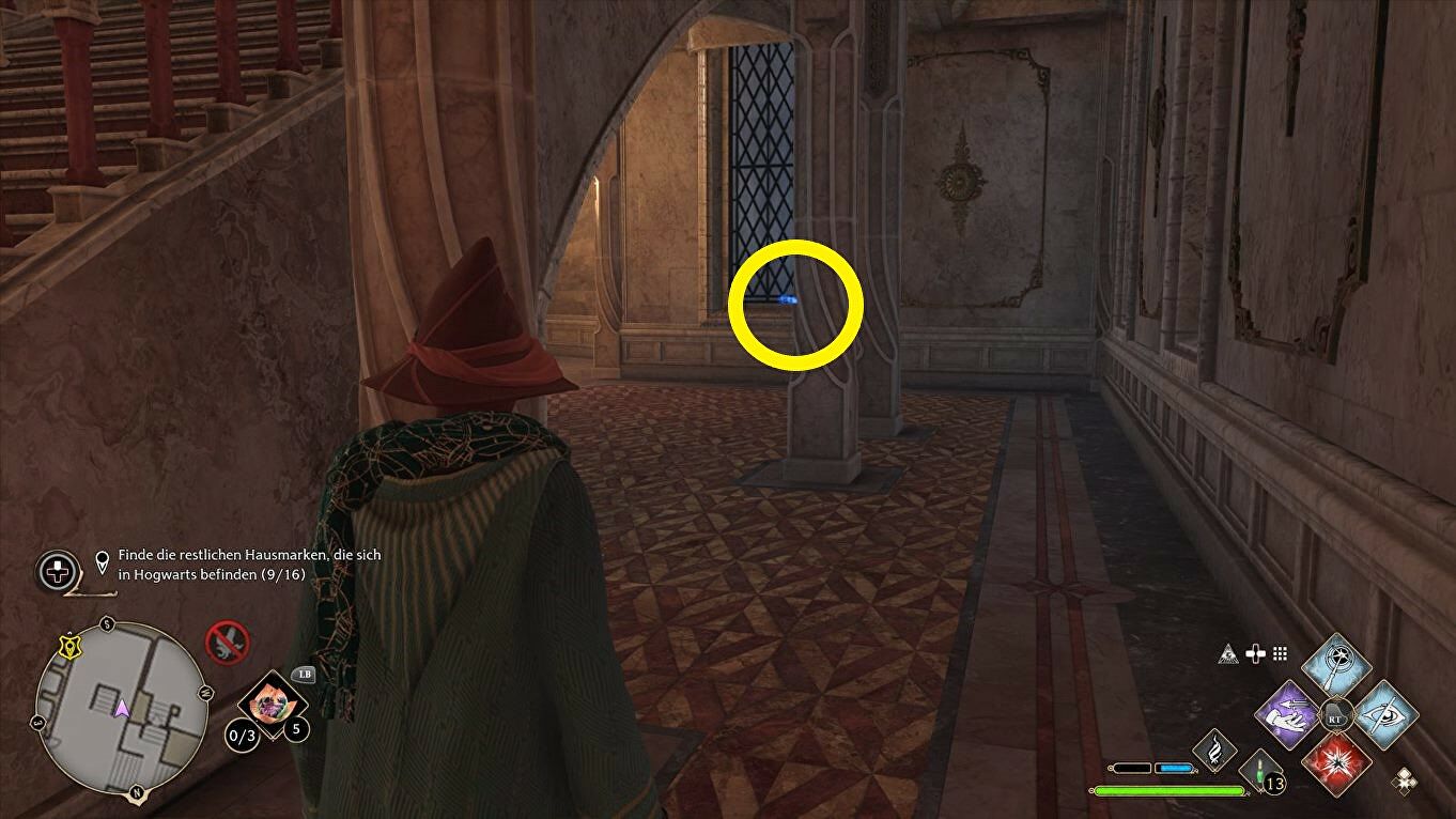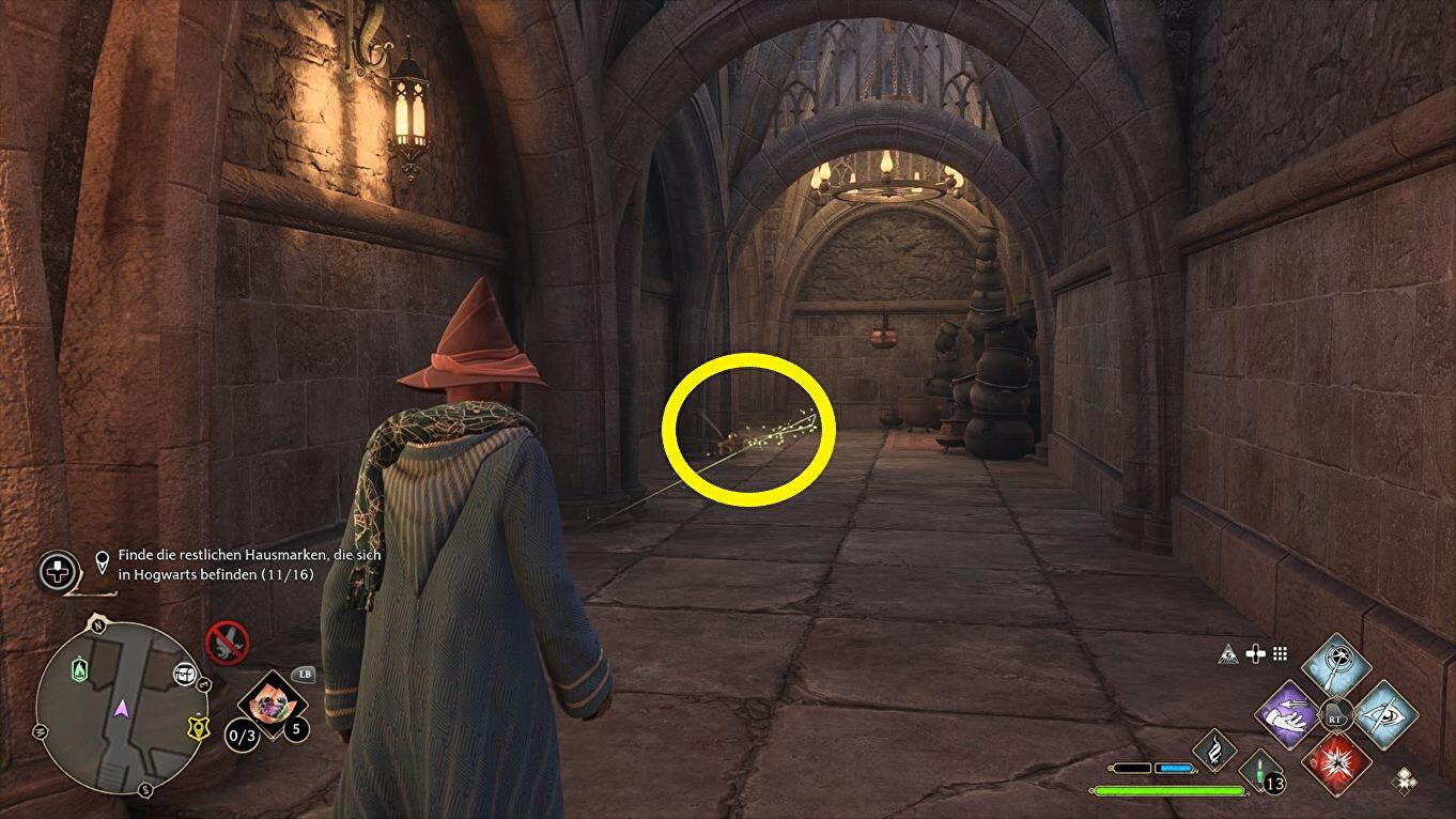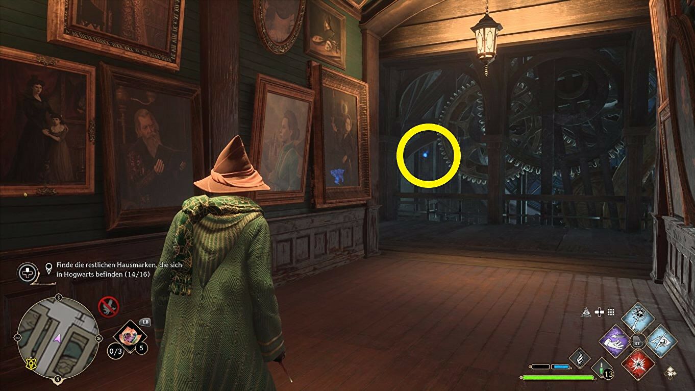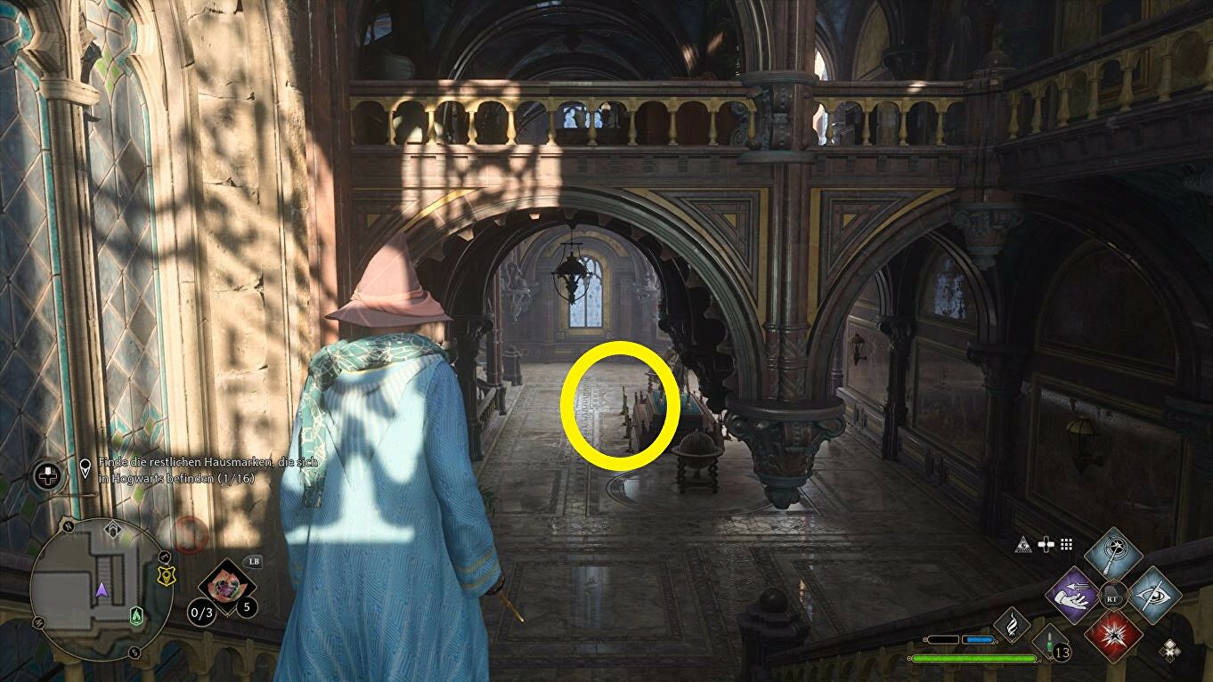 Voor de sleutel moet je de trap op en Revelio gebruiken om hem te markeren. Je komt ook langs deze plek tijdens de quest "The Caretaker's Lunar Lament" dus is het goed mogelijk dat je de sleutel toen al gevonden hebt.