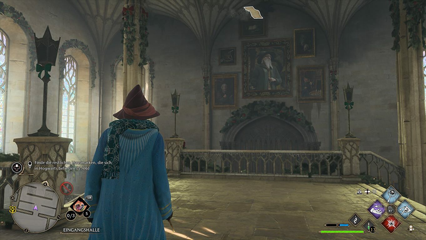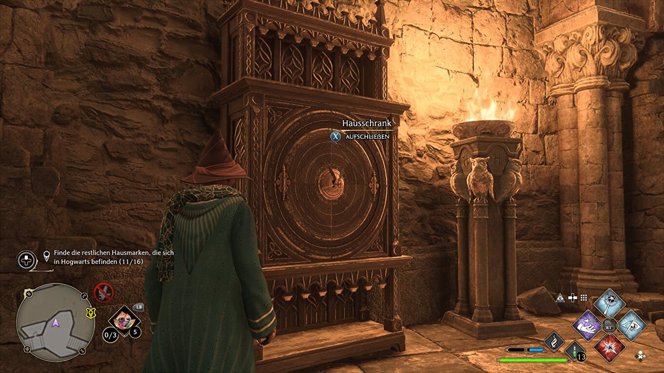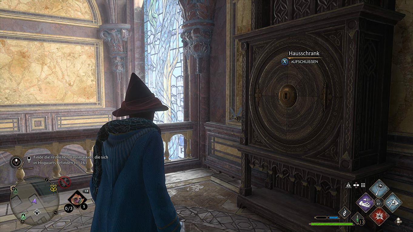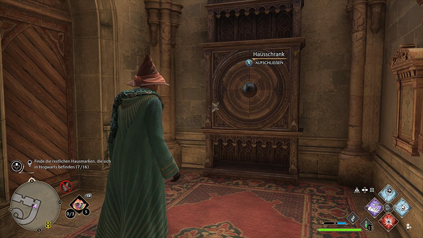 Locatie: Begin in de South Wing > Hospital Wing, draai je na de fast travel om en volg de wenteltrap naar beneden naast de Floo Flame. Het Cabinet staat links, de sleutel vliegt rond in de gang rechts: