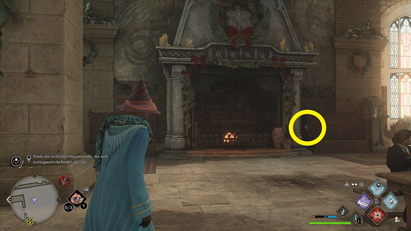 Locatie: Begin bij de Great Hall en sla linksaf. Loop een paar meter door de eetkamer om de sleutel bij de open haard te zien: