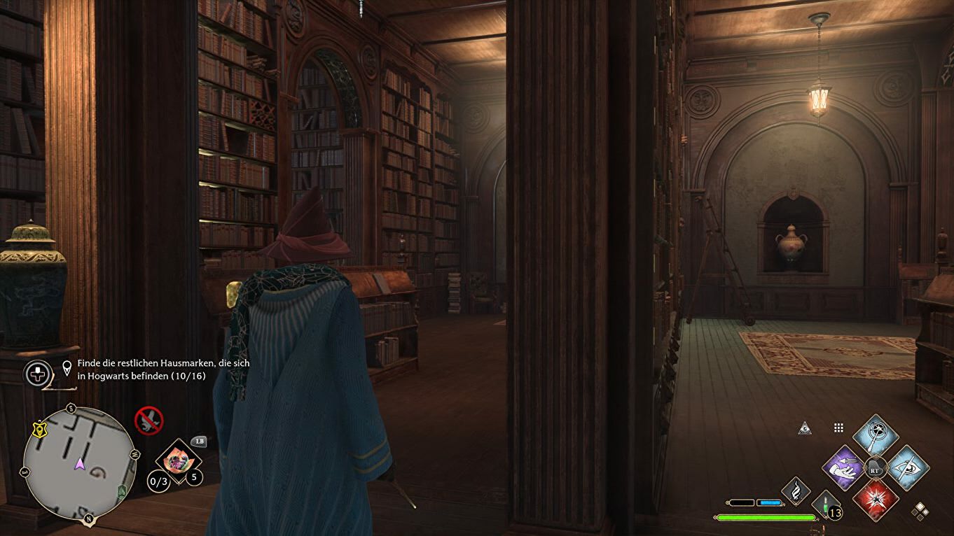 Locatie: Begin in de Central Hall > Library en sla linksaf. Gebruik Revelio en kijk rond tussen de boekenplanken op ongeveer dit punt: