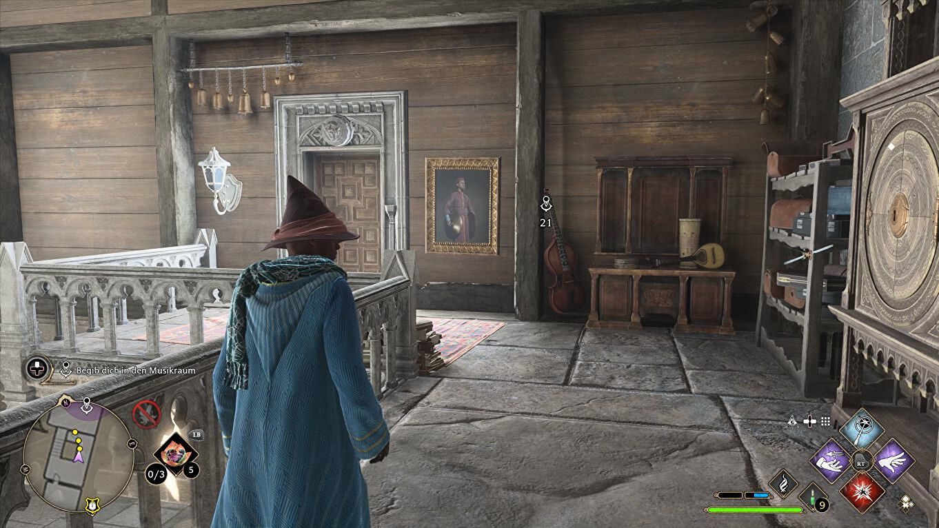 Ga via de Transfiguration Courtyard naar de noordwestelijke deur van de North Hall van Hogwarts. Volg de trappen omhoog om naar de Music Room te gaan: