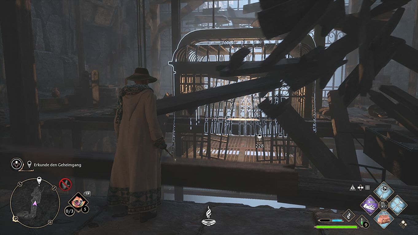 Gebruik hier nogmaals Levioso, spring naar de overkant, gebruik Reparo gevolgd door Levioso, en verbrand de spinnenwebben die je de weg blokkeren.