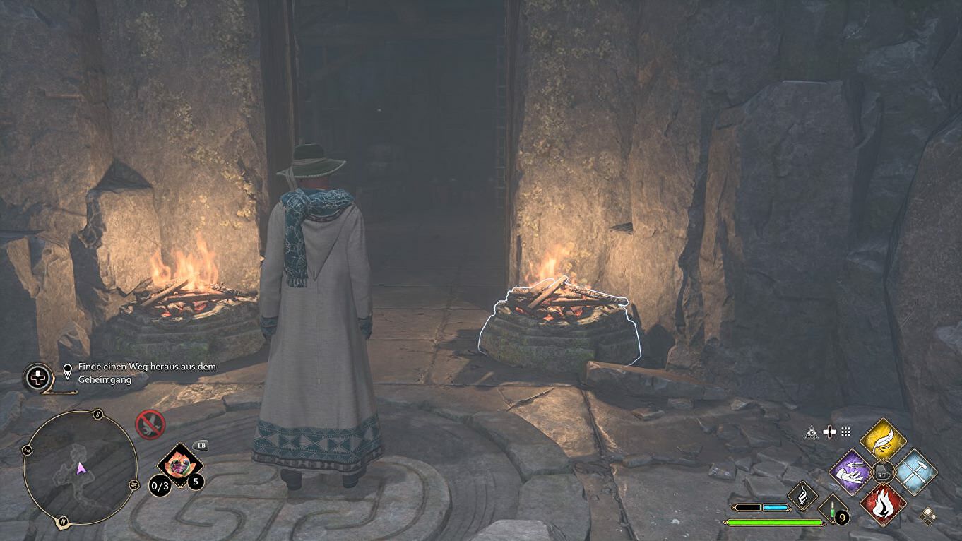 Links bij de waterval kan je nog een kist plunderen. De uitgang open je door de twee houtstapels in brand te steken.