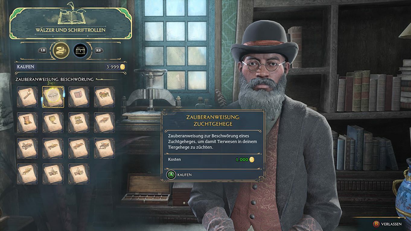 Nu je de twee Thestrals gevangen hebt, ga je naar Hogsmeade waar je de winkel Tomes and Scrolls hebt. Koop bij Thomas Brown het item "Breeding Pen Spellcraft" voor 1000 Gold.