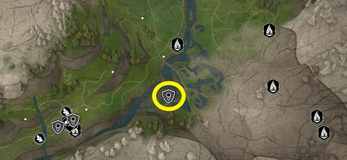 De zoektocht naar een Diricrawl brengt ons naar de plek op de foto hierboven. Dit ligt ten zuiden van Hogwarts en ten noordwesten van Keenbridge.