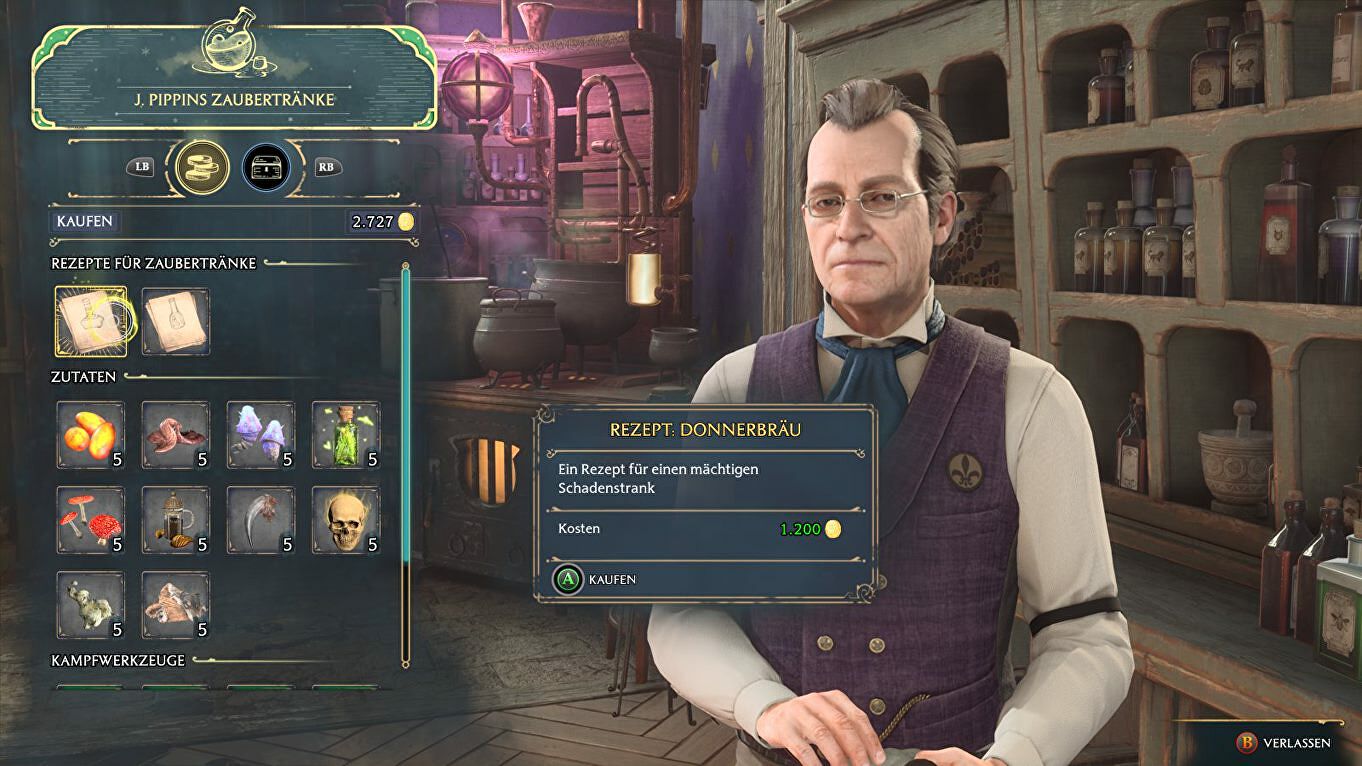 Voor de Focus Potion moet je naar de winkel "J. Pippin's Potions" in Hogsmeade. Je bent hier al geweest tijdens de main quest "Welcome to Hogsmeade".
