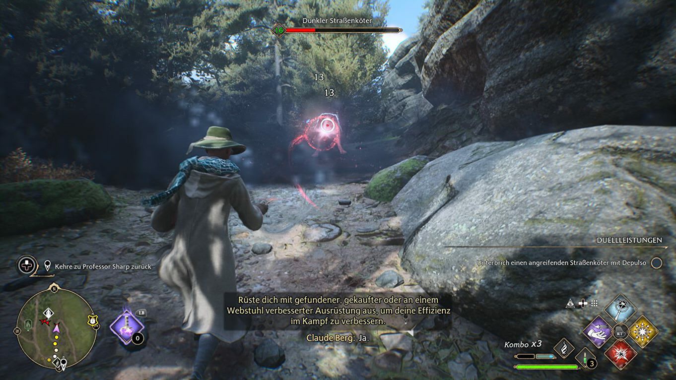 Ga nu terug naar Professor Sharp in de Potions Classroom overdag waar hij je de spreuk Depulso aanleert. Ook kan je verder met de main quest 'The Helmet of Urtkot'.