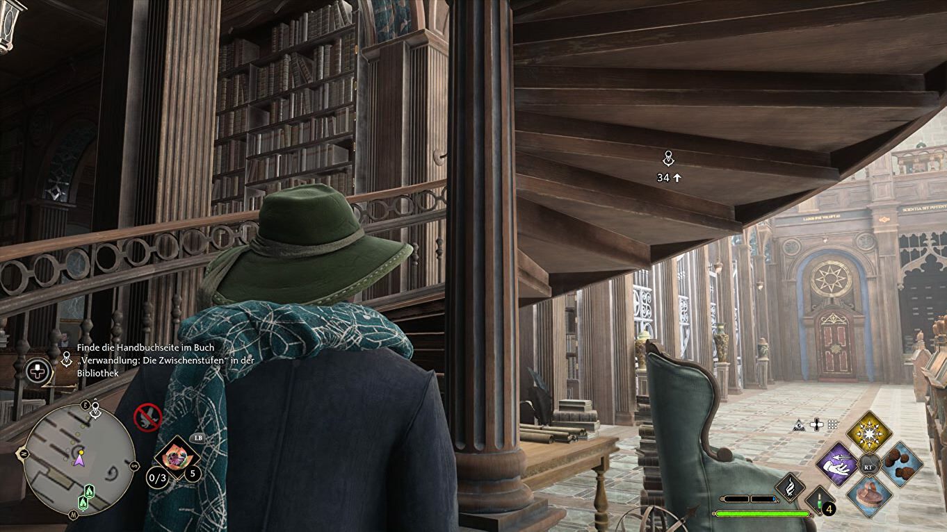 Verlaat de grot opnieuw en roep de bezem op om terug naar de Library Annex te vliegen. Je kan natuurlijk ook een Floo Flame gebruiken.