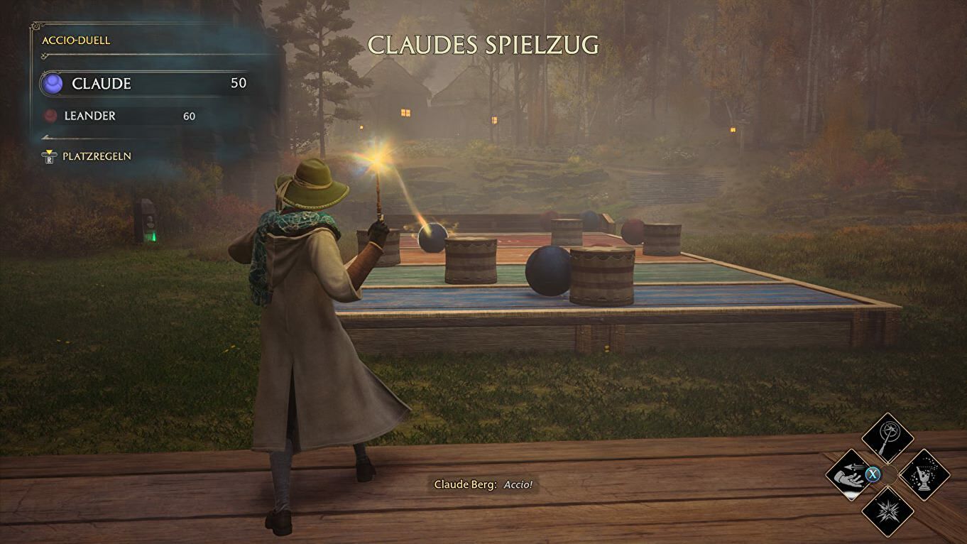 Net zoals in de les moet je met behulp van Accio ballen naar je toe trekken op het bord en de spreuk op tijd beëindigen zodat de ballen in de rij van 50 punten tot stilstand komen.